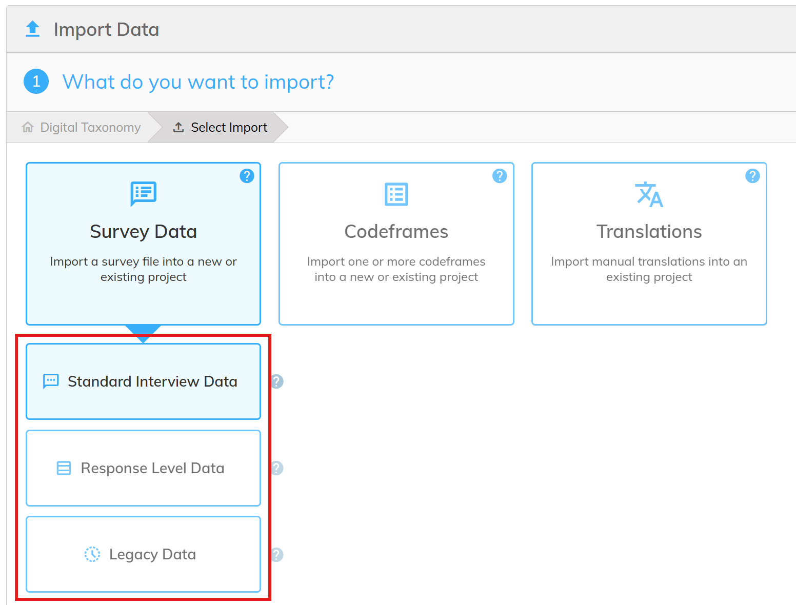 This page explains how to select the correct file type when importing survey data.