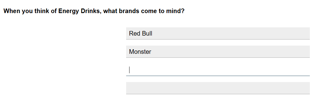 A Forsta Plus Text List question will display a list of text boxes to the respondent, and ask them to enter a separate text response in each.