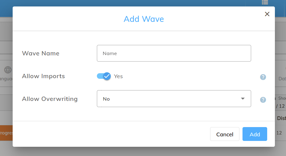 | Allow Imports | Whether data can be imported in this Wave. Defaults to Yes |